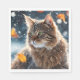 Beautiful Grey Tabby Cat Fall Leaves Napkin