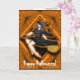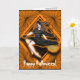 Designed as an adult Halloween greeting card this design features a beautiful witch in black dress and black hat flying side saddle on her broomstick! Orange diamond shaped background and spiderwebs in each corner! Halloween witch card, perfect as an adult costume party invitation! Happy Halloween text can be edited! Text or photographs can be added to the inside of card! Spread the fearful fun!