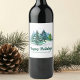 This beautiful custom business holiday party wine label features gorgeous green Christmas trees in a winter landscape above your customized company name and Happy Holidays. Personalized holiday decor for a corporation or family.