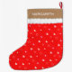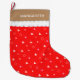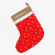 Beautiful heart pattern on red Christmas stocking. The stocking upper part is beige coloured. Name is ready to be personalized.