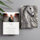 This modern script 30th birthday party invitation is perfect for any horse lover. The front features a modern minimalist design with a single horizontal photo. There is a beautiful ornate silver-grey horse on the back. All fonts and colours can be customized, on the front of the invitation.
