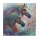Two beautiful horses with flowing manes and flowers. A pretty artistic horse art tile.