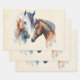 Wrapping paper with a beautiful watercolor drawing. Featuring a pair of horses, brown and white. Head and neck visible with dripping paint along the base of their neck. Southwestern vibe.