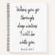 A beautiful Bible verse from Isaiah 43:2, this notebook makes a lovely journal. It reads, "When you go through deep waters, I will be with you" in lovely black cursive font. Purchase yours today!