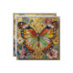 A pretty blank card on the back, with a front illustration of a beautiful gold, teal and orange butterfly surrounded by yellow, white and purple flowers. It's done with an impasto style and just emanates beauty and grace.