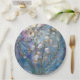 Elegant iridescent Lily of the Valley paper plates with Lovely Lily of the Valley floral. Background is beautiful shades of blue, purple pink, and lavender.