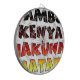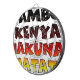 Text: The central motif consists of the words "JAMBO," "KENYA," "HAKUNA MATATA." "JAMBO" means "hello" in Swahili, while "HAKUNA MATATA" translates to "no worries." Together, these phrases convey a welcoming and positive message.