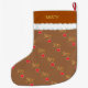 Beautiful joy heart pattern on brown Christmas stocking. Name is ready to be personalized.