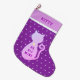 Beautiful Kitty cat and star pattern on violet and royal purple background Christmas stocking. Name can be personalized.