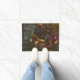 This design features a painting by the English Pre-Raphaelite artist John William Waterhouse (1849–1917). It shows an attractive woman in a Medieval woodland. There is a knight in armour kneeling down beside her. She is wrapping her long brown hair around his neck, bringing him closer to her as looks lovingly into his eyes. She is wearing a purple dress and she has bare feet. There are flowers strewn around her. The knight looks bewildered but entranced by the woman's beauty. The scene is based on a ballad by English poet John Keats called "La Belle Dame sans Merci" [The Beautiful Lady Without Mercy]. The poem is about a fairy who condemns a knight to an unpleasant fate after she seduces him with her beautiful eyes and singing. The original artwork was painted by John William Waterhouse in 1893.