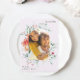This pretty muted purple lavender wedding save the date announcement features colourful watercolor blooms and delicate soft peach, ivory white, and pink flowers, with subtle green leaves which add a soft beauty to this romantic design. A beautiful arch shape photo sits in the middle of the card. Shop this store for coordinating wedding invitations.