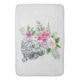 A bath mat with a beautiful illustration featuring a grey, black and white leopard portrait. This lovely animal is surrounded by a tropical flower bouquet. Elegant, exotic and lovely.