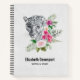 A personalized spiral notebook with a beautiful illustration featuring a grey, black and white leopard portrait. This lovely animal is surrounded by a tropical flower bouquet. Elegant, exotic and lovely.