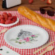 Paper plates with a beautiful illustration featuring a grey, black and white leopard portrait. This lovely animal is surrounded by a tropical flower bouquet. Elegant, exotic and lovely.