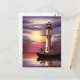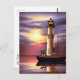 A postcard to keep in touch with a friend or family member with a boat, lighthouse and beautiful sunset.