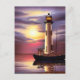 Beautiful Lighthouse, Sailboat and Ocean Sunset Postcard