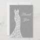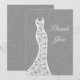 A romantic lace wedding dress accents this thank you on an illustrated grey linen background. There is lots of room on the back for your personal message.