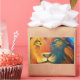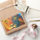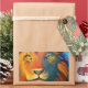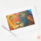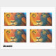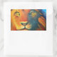 A rectangular sticker with an oil painted digital image of a close up of a lions face, with piercing yellow eyes. Dominant colours include orange and yellow. Looking proud, regal and fierce.