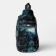 Powerful natural scene. Awesome night image from forest floor of full moon through bluish tree leaves.
