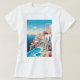 Imagine a vibrant t-shirt featuring a stunning design inspired by the colourful streets of a Moroccan city. The shirt showcases a detailed illustration of intricate mosaic patterns, typical of Moroccan architecture, with rich blues, warm oranges, and deep reds blending seamlessly. In the background, you can see the silhouette of iconic Moroccan buildings, complete with arched doorways and ornate tile work. Small elements like traditional lanterns and palm trees add to the charm. The fabric is soft and breathable, perfect for warm weather, making it not just a piece of art but also a comfortable addition to your wardrobe. Whether you're exploring new cities or lounging at home, this t-shirt captures the essence of Moroccan culture and artistry.