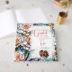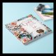 A gorgeous illustration mimicking a stained glass and tiles mosaic of coral roses and with blue and other colourful accents. This elegant wedding guestbook has a beautiful vintage aesthetic. Bride and Groom's name and wedding date in rose gold metallic print.