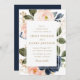 beautiful navy & pink blush blooms wedding invitation