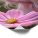 A beautiful pink haired fairy with shimmering wings wearing a pretty pink dress and opal jewellery holds a single cosmos while standing in a field of cosmos.