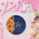 Beautiful Orange Rose and Navy Blue Wedding Paper Plate