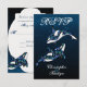 Beautiful Orca Whales Wedding RSVP cards with a starry background in shades of blue, white and black. This design is perfect for destination and beach themed weddings.