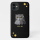 Beautiful owl and golden confetti on black iPhone 11 Case. Text can be personalized.