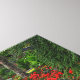 View into a lovely garden. Water, pink and yellow flowers, palm trees and cypresses. Photo taken at Flor and Fjaere Park, Stavanger region, Norway.