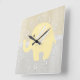 Beautiful Pastel Yellow Baby Neutral Elephant Square Wall Clock