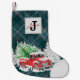 Beautiful pattern monogrammed red truck blue plaid Small Christmas Stocking.
