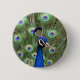 Beautiful peacock with its colourful tail opened 2 inch round button