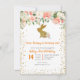 Beautiful Pink Floral Bunny 1st Birthday Invitation