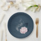 beautiful pink flowers & navy leaves botanical wedding paper plates