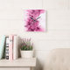 Beautiful pink grey cool splatter flowers leaves square wall clock