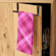 A kitchen towel featuring a cute plaid pattern design in beautiful pink magenta.