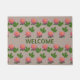 Beautiful pink roses on beige door mat. Welcome text can be personalized.