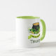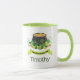 This coffee mug features a pot of gold, with a banner exclaiming "Happy Saint-Paddy's Day" with your name written in green font underneath. The inside and handle is in lime green. Choose from a variety of coffee mugs. Personalize yours today!