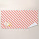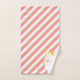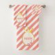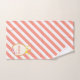 Fashion towel set with beautiful Queen's crown and pink flowers design with diagonal coral and white stripes on the background. Text MOM can be customized.