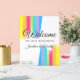 Belle aquarelle arc-en-ciel personnalisée Bienvenue à Notre enseigne acrylique Mariage avec de jolies touches de peinture artistique pleine de couleurs vives pour un événement LGBTQ. Customisez avec votre nom dans un élégant script cursif.