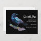 Save the date postcard with a lovely watercolor drawing of a crow. Dark blue and vibrant purple colours accentuate the beauty of this bird.
