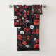 Beautiful Red and White Roses Black Background Bath Towel Set