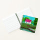 This lovely square-sized notebook is a great way for your guests to thank you and leave recommendations for others. It features a cute white cabin with a deep reddish roof, on the edge of a lake with an inviting dock. If you offer a vacation rental cottage or cabin, this might be the perfect touch for engaging with your guests. If you want another phrase or additional words, you can edit the text.