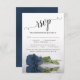 This beautiful RSVP card features a simple yet elegant design with a single long-stemmed dusty steel blue coloured rose reflecting in a pool of water with ripples and waves. The title is written in lacy script calligraphy and there is space for your guests to indicate the total number that will be attending and their choice of meal.