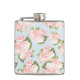 Beautiful rose pattern with blue polka dots hip flask