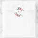 Pretty watercolor floral pink roses and greenery sticker with bride and groom's monograms and wedding date.