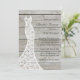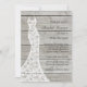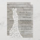 A romantic lace wedding dress accents this bridal shower invitation on a barn board background. This coordinates beautifully with the country, rustic, boho or barn wedding. The tone of the background resembles drift wood, so this works equally well with destination or beach weddings. Scroll down to see coordinating items.