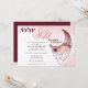 Beautiful pink and maroon crescent moon mandala with draped beads surrounded by pink and deep crimson rose with sage foliage accents highlighted by a pale blush pink watercolor wash background - the back is a coordinating colour easy to customize template - JustCards™. This is Also part of a complete wedding stationery suite, For question or assistance please contact designer indy.designer@yahoo.com.